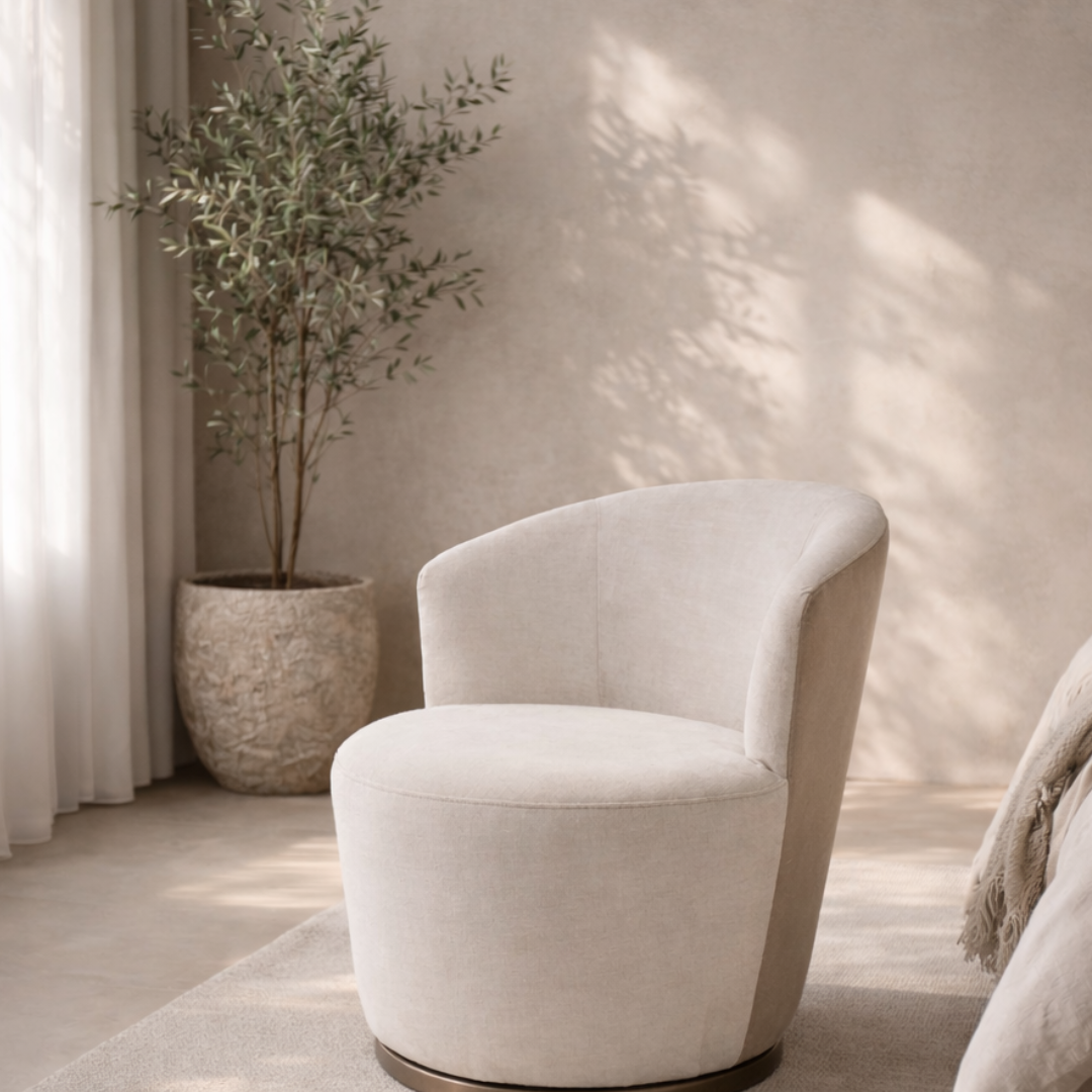Derry Swivel Chair - Bella Velour Cream & Taupe