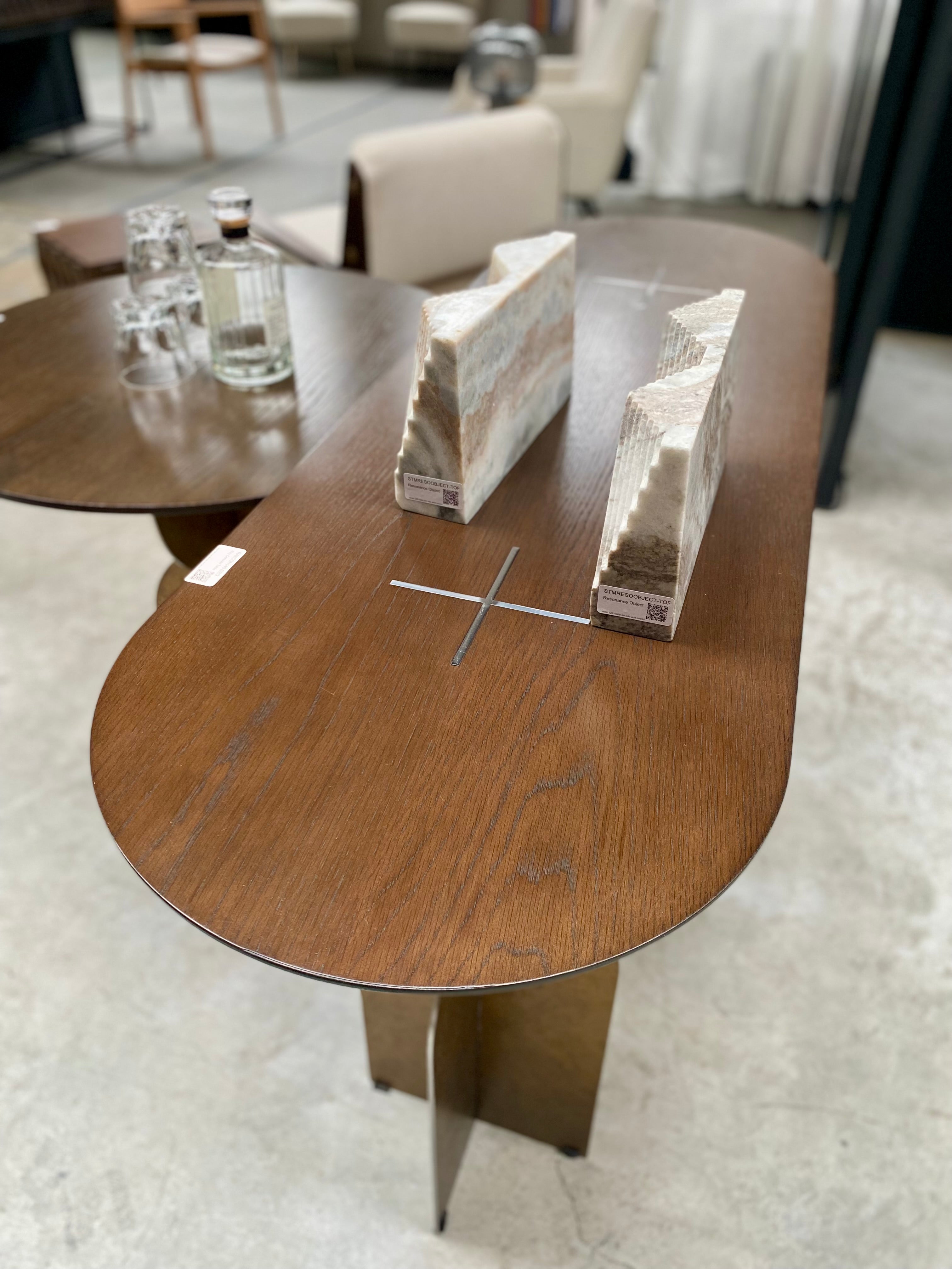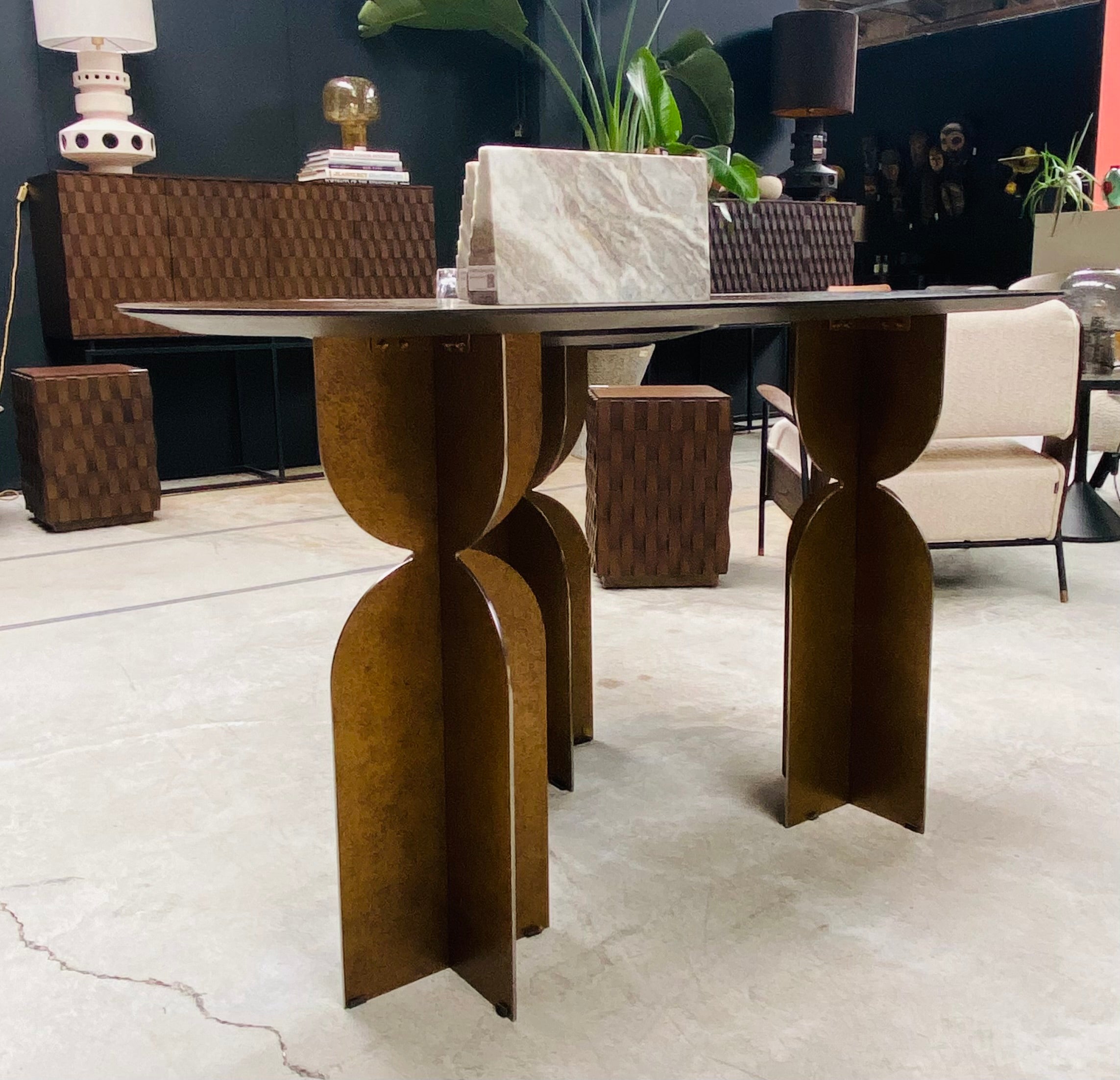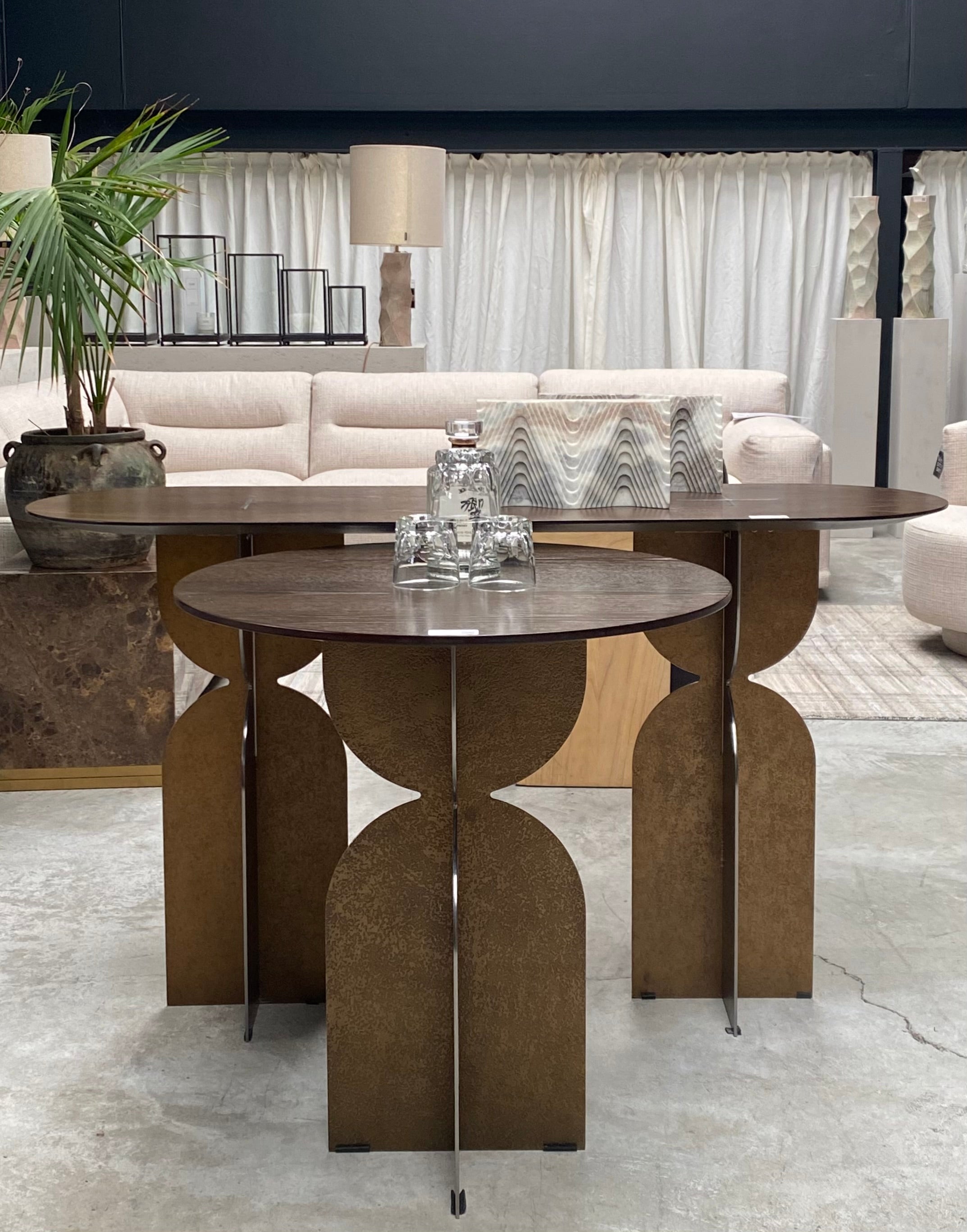 The Ray Bronze Steel Console Table by Versmissen blends classic craftsmanship and modern design for a timeless piece. Sturdy yet stylish, the bronze steel base and oval brown oak wood top make the perfect combination of durability and luxury. A unique base design adds a contemporary touch that elevates this piece to an exclusive level.