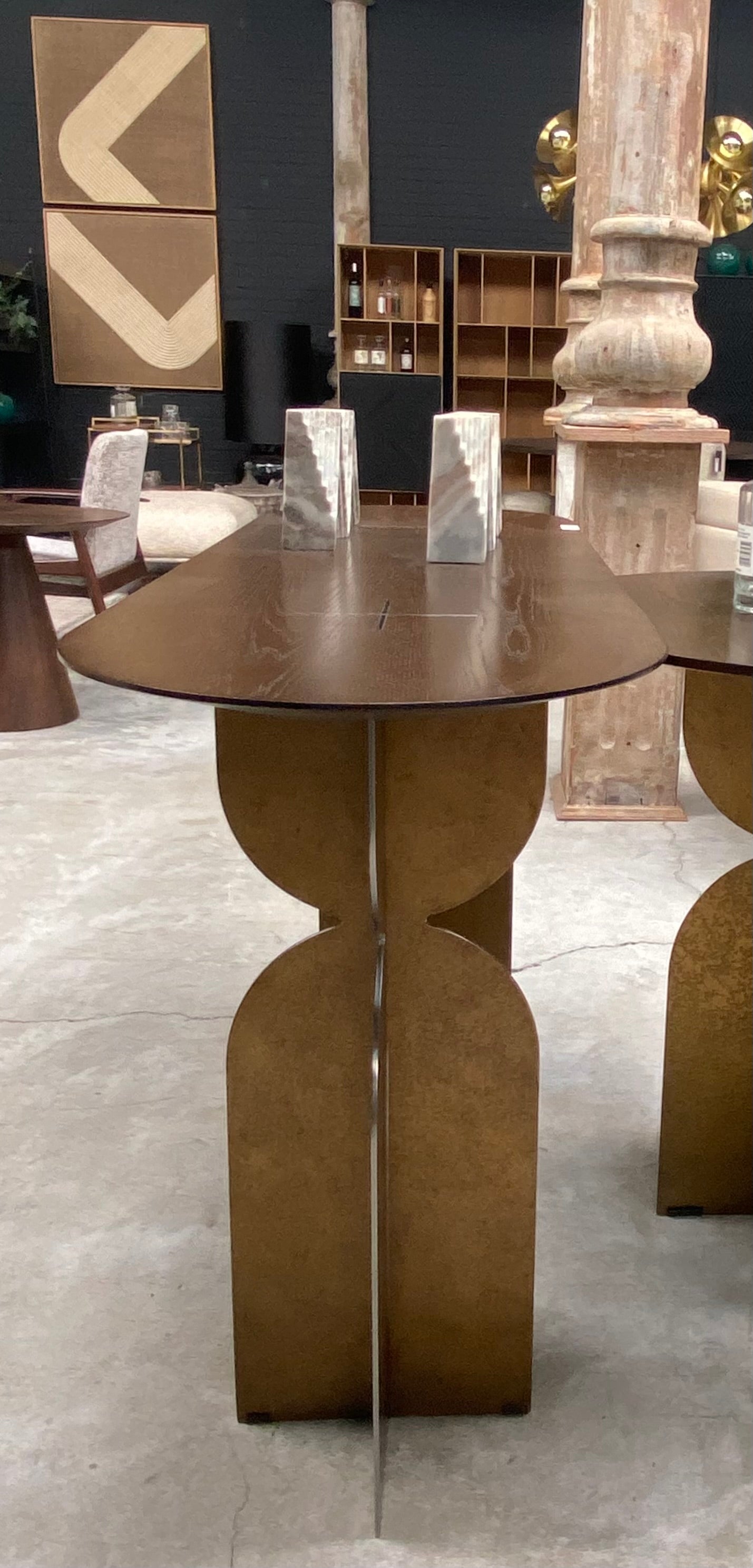 Ray Bronze Steel Console Table with Brown Oak Wood Top