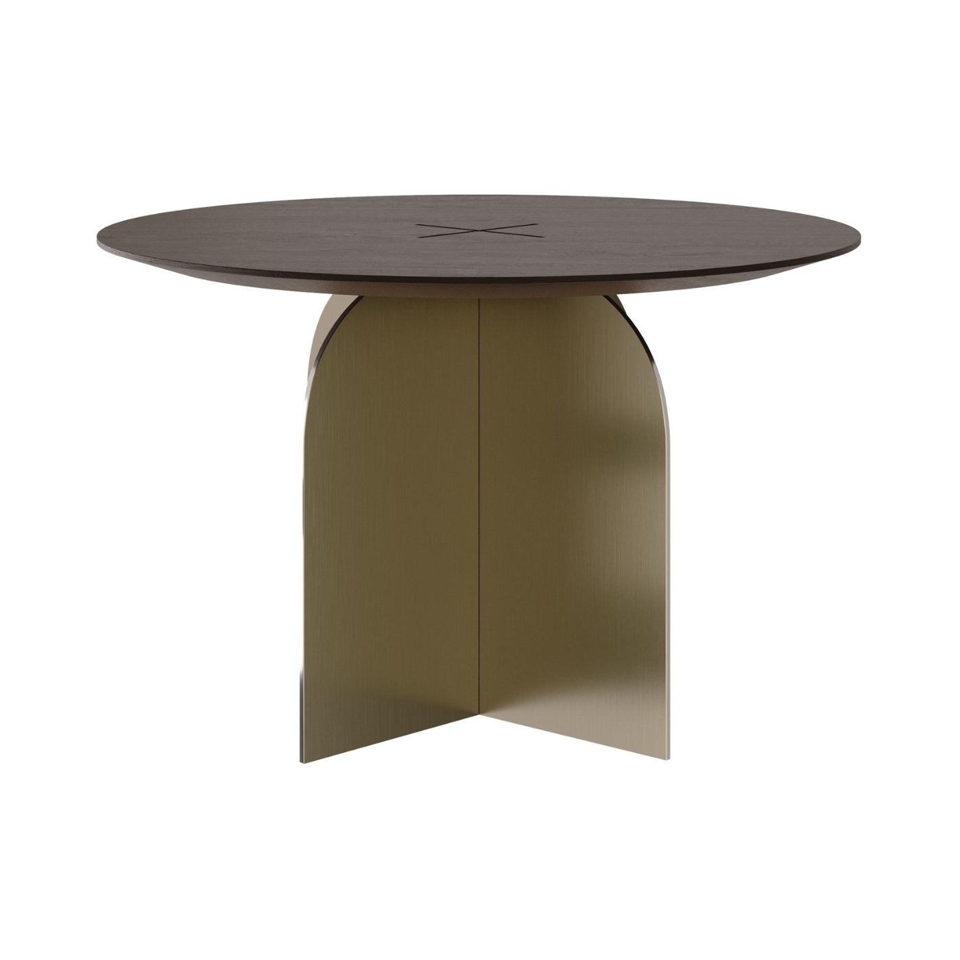 Ray Brushed Bronze Steel Coffee Table Dark Brown Oak Wood Top - V2