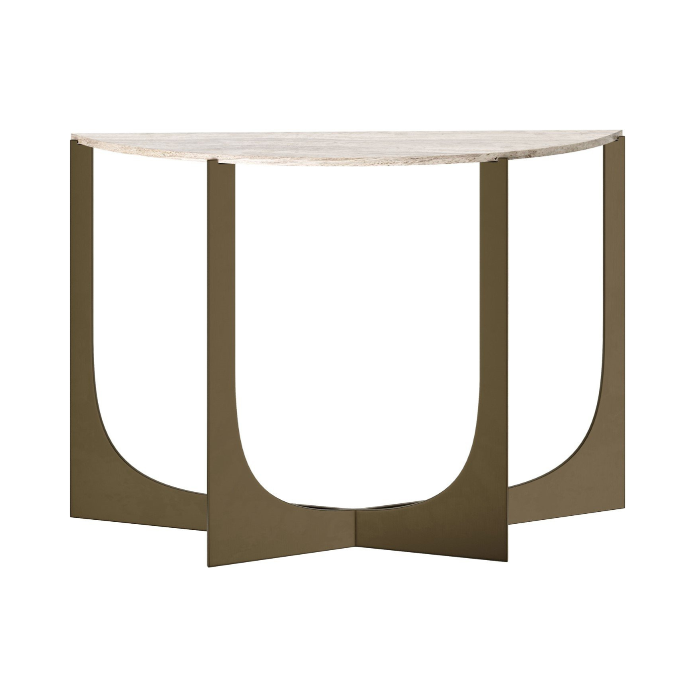 Travis Bronze Steel Console Table Grey Travertine Top