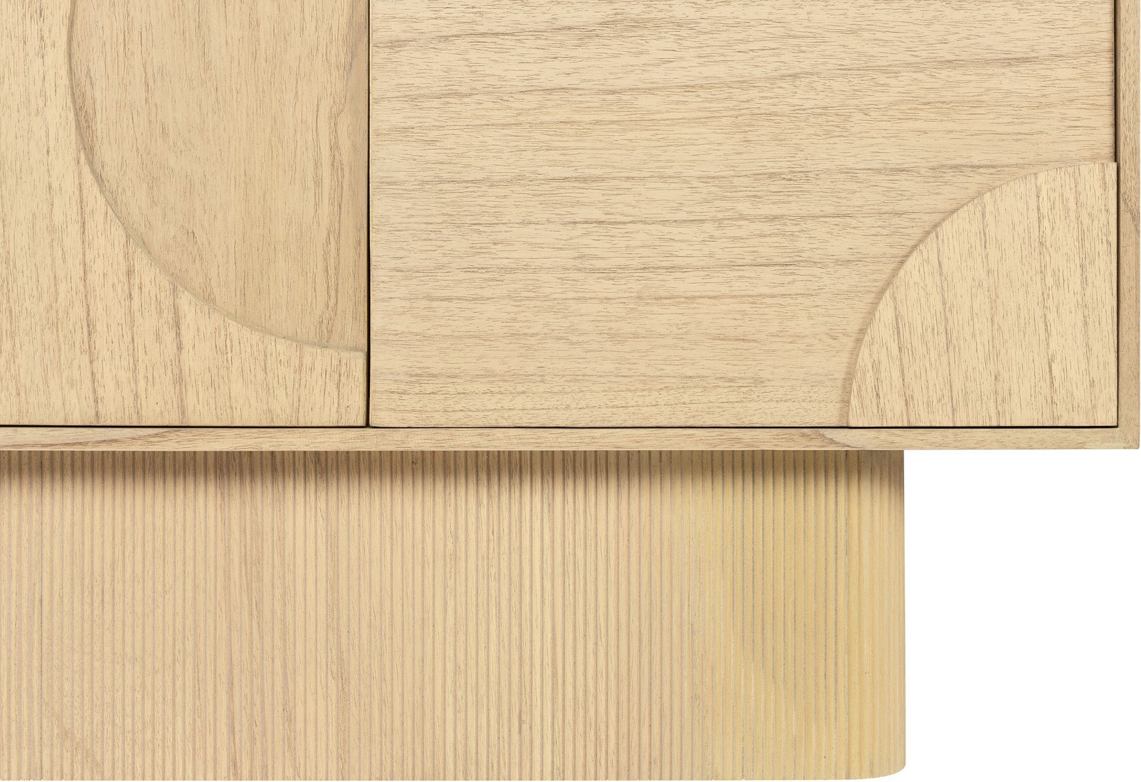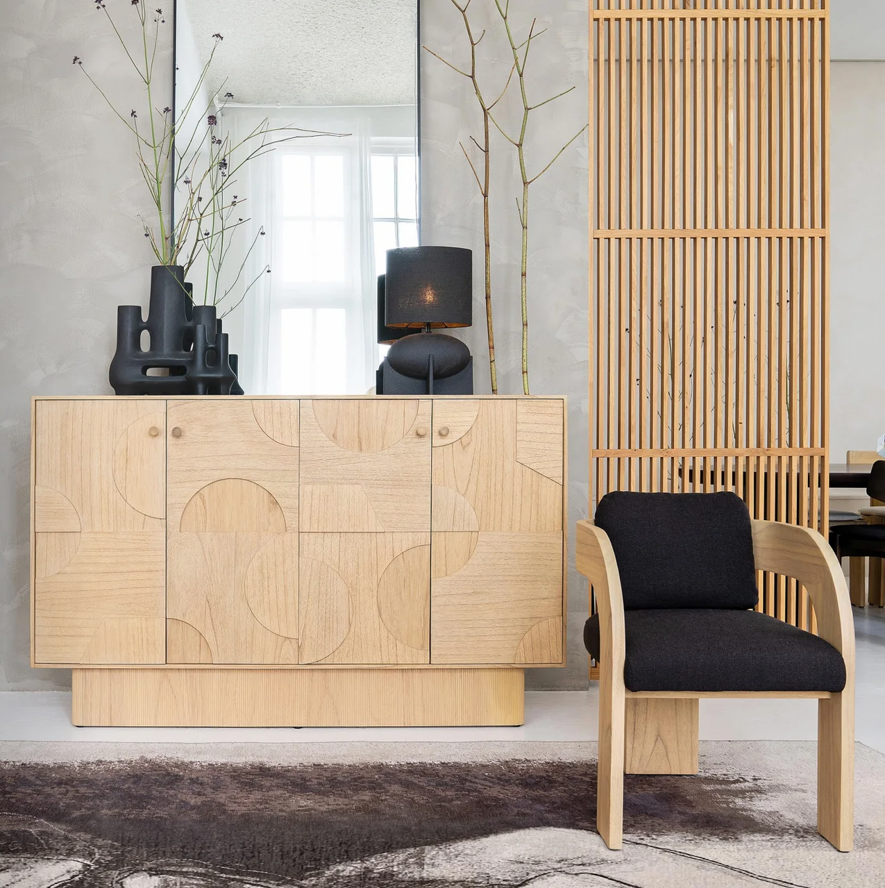 The Zulgo Mindi Wood Sideboard by Versmissen offers ample storage in a unique design with a solid Mindi wood base. Crafted with Mindi, a tropical hardwood, this Sideboard is incredibly strong and durable, perfect for storing your most valuable items. Its design adds an attractive touch to any room, allowing you to tastefully store items in style.