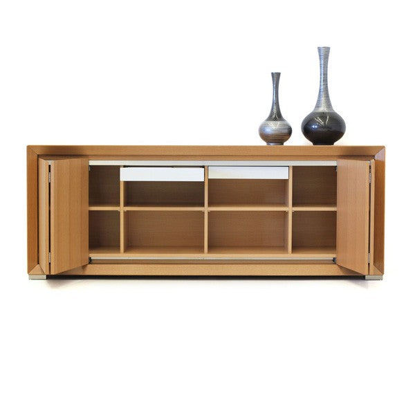 The Alida Buffet showcases the enduring charm of mid-century design influences with a modern twist. Its beveled edge design and walnut veneer finish pay homage to the classic mid-century aesthetic while maintaining a contemporary appeal. With four doors and internal storage that includes both shelves and drawers. this buffet offers ample space for organizing and storing various items. At 2 meters in length. it's not only a functional storage solution but also a stylish addition to any dining or living area. seamlessly blending retro elegance with the practicality of today's design preferences.