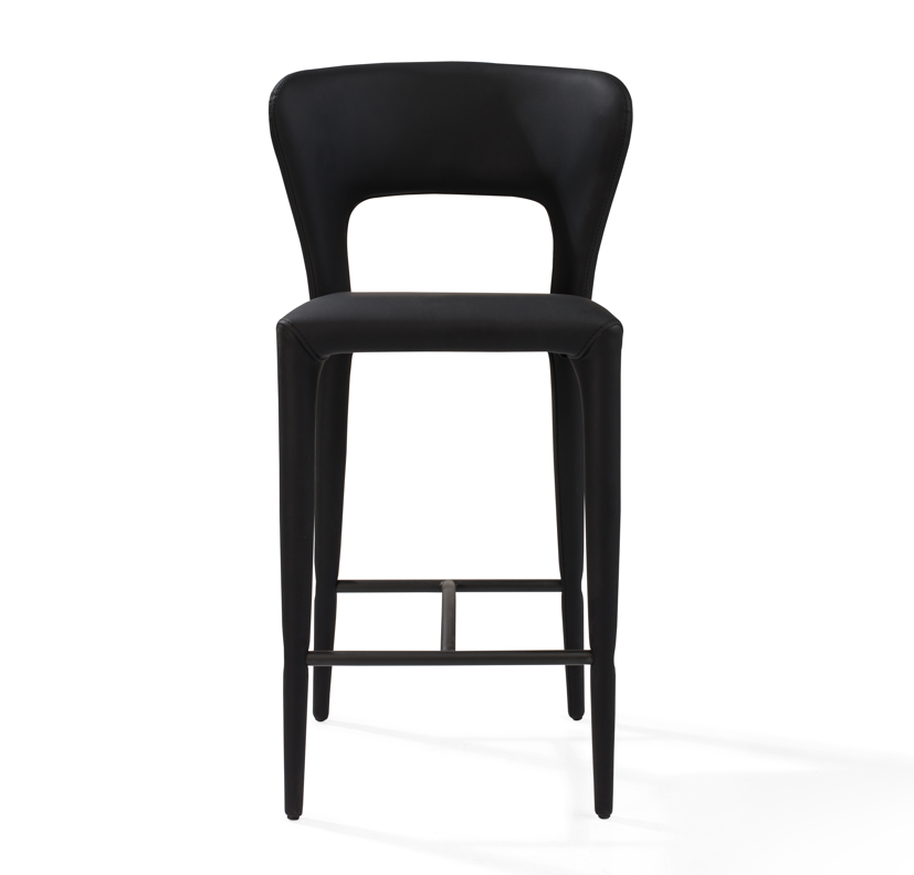 The Pari I Bar Stool, fully upholstered in sleek Mustang Black CPU with a subtle grain effect, brings an element of luxury and sophistication to any modern space. Its refined silhouette exudes understated elegance, making it the perfect addition to a contemporary bar or stylish kitchen. The rich texture of the Mustang Black, combined with its sleek form, creates a captivating centerpiece that enhances the ambiance of any interior.