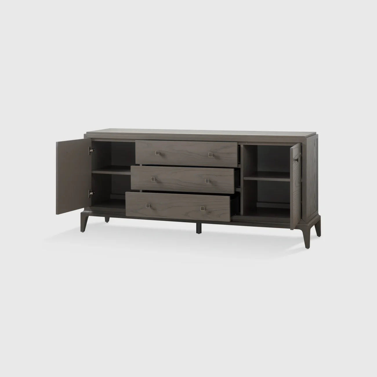 Functionality meets luxury in the Astoria Cabinet Macchiato, with its three deep drawers and two generous cupboards providing exceptional storage. This luxury cabinet is designed to accommodate your storage needs without compromising on style, making it an ideal choice for those who value both aesthetics and practicality.