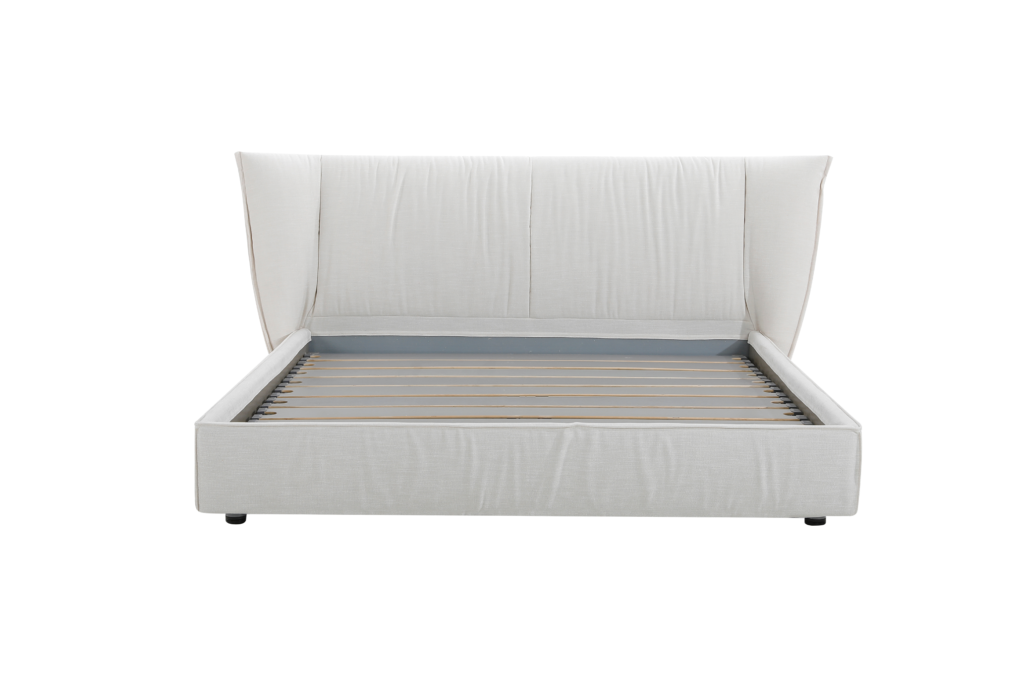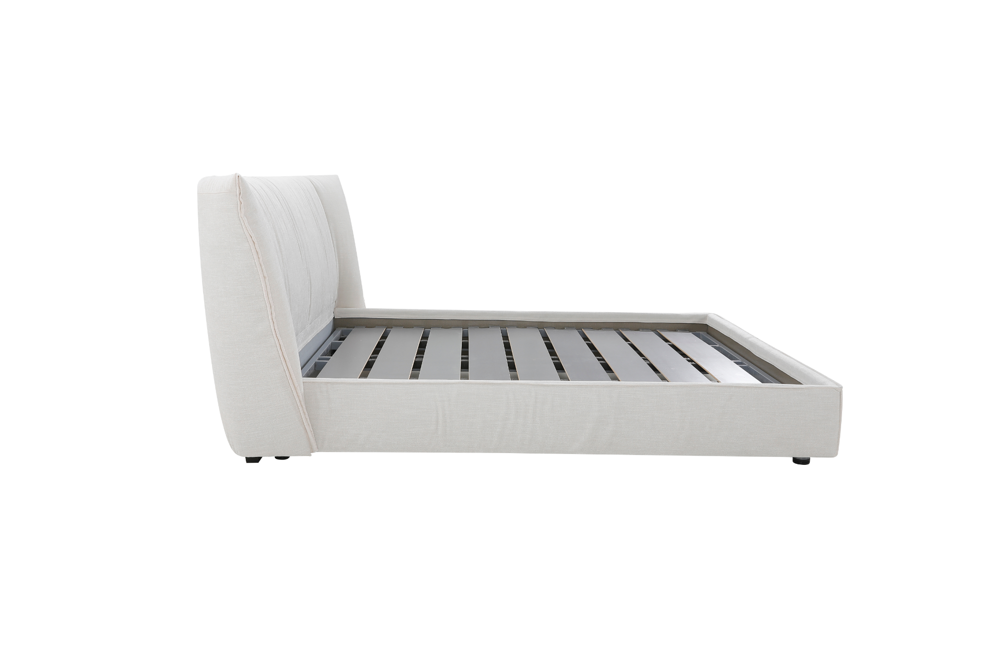 • Upholstered in soft beige fabric for a calm, versatile look